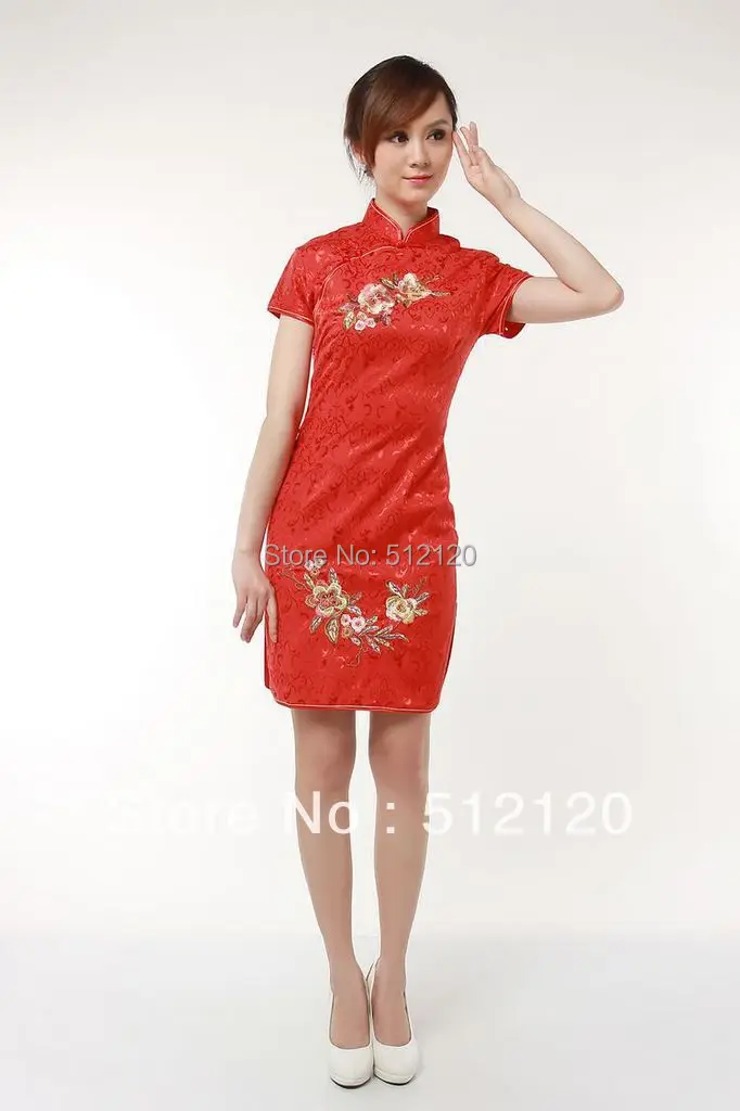 Women¡¯s knee length qipao dress red chinese wedding dress cheongsam.